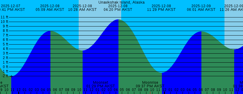2025-12-07 01:13 PM AKST Moonset 2025-12-07 03:30 PM AKST 11.38 feet High Tide 2025-12-07 04:54 PM AKST Sunset 2025-12-07 08:00 PM AKST Moonrise 2025-12-07 10:41 PM AKST -2.10 feet Low Tide 2025-12-08 05:09 AM AKST 7.98 feet High Tide 2025-12-08 09:52 AM AKST Sunrise 2025-12-08 10:28 AM AKST 3.66 feet Low Tide 2025-12-08 01:29 PM AKST Moonset 2025-12-08 04:20 PM AKST 10.54 feet High Tide 2025-12-08 04:53 PM AKST Sunset 2025-12-08 09:37 PM AKST Moonrise 2025-12-08 11:29 PM AKST -1.28 feet Low Tide 2025-12-09 06:01 AM AKST 7.87 feet High Tide 2025-12-09 09:53 AM AKST Sunrise 2025-12-09 11:26 AM AKST 3.88 feet Low Tide 2025-12-09 01:38 PM AKST Moonset 2025-12-09 04:53 PM AKST Sunset 2025-12-09 05:14 PM AKST 9.48 feet High Tide 2025-12-09 11:09 PM AKST Moonrise 2025-12-10 12:18 AM AKST -0.31 feet Low Tide 2025-12-10 06:54 AM AKST 7.83 feet High Tide 2025-12-10 09:54 AM AKST Sunrise 2025-12-10 12:31 PM AKST 4.05 feet Low Tide 2025-12-10 01:45 PM AKST Moonset 2025-12-10 04:52 PM AKST Sunset 2025-12-10 06:11 PM AKST 8.33 feet High Tide 2025-12-11 12:34 AM AKST Moonrise 2025-12-11 01:08 AM AKST 0.71 feet Low Tide 2025-12-11 07:48 AM AKST 7.89 feet High Tide 2025-12-11 09:56 AM AKST Sunrise |
