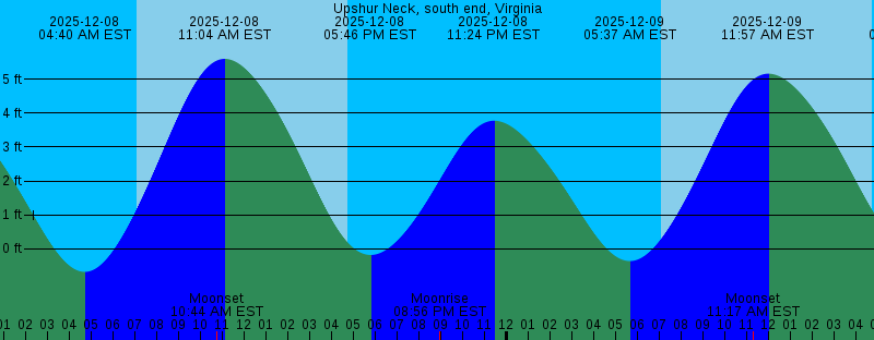 2025-12-07 04:44 PM EST Sunset 2025-12-07 04:51 PM EST -0.39 feet Low Tide 2025-12-07 07:43 PM EST Moonrise 2025-12-07 10:30 PM EST 3.91 feet High Tide 2025-12-08 04:40 AM EST -0.68 feet Low Tide 2025-12-08 07:05 AM EST Sunrise 2025-12-08 10:44 AM EST Moonset 2025-12-08 11:04 AM EST 5.60 feet High Tide 2025-12-08 04:44 PM EST Sunset 2025-12-08 05:46 PM EST -0.18 feet Low Tide 2025-12-08 08:56 PM EST Moonrise 2025-12-08 11:24 PM EST 3.78 feet High Tide 2025-12-09 05:37 AM EST -0.36 feet Low Tide 2025-12-09 07:06 AM EST Sunrise 2025-12-09 11:17 AM EST Moonset 2025-12-09 11:57 AM EST 5.17 feet High Tide 2025-12-09 04:45 PM EST Sunset 2025-12-09 06:41 PM EST 0.01 feet Low Tide 2025-12-09 10:06 PM EST Moonrise 2025-12-10 12:20 AM EST 3.66 feet High Tide 2025-12-10 06:37 AM EST -0.01 feet Low Tide 2025-12-10 07:07 AM EST Sunrise 2025-12-10 11:44 AM EST Moonset 2025-12-10 12:51 PM EST 4.69 feet High Tide 2025-12-10 04:45 PM EST Sunset 2025-12-10 07:35 PM EST 0.17 feet Low Tide 2025-12-10 11:11 PM EST Moonrise 2025-12-11 01:19 AM EST 3.60 feet High Tide 2025-12-11 07:08 AM EST Sunrise 2025-12-11 07:39 AM EST 0.30 feet Low Tide 2025-12-11 12:08 PM EST Moonset 2025-12-11 01:46 PM EST 4.24 feet High Tide |