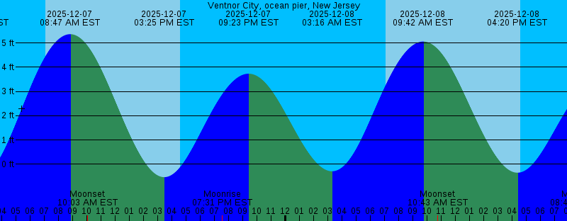 2025-12-07 02:20 AM EST -0.52 feet Low Tide 2025-12-07 07:04 AM EST Sunrise 2025-12-07 08:47 AM EST 5.36 feet High Tide 2025-12-07 10:03 AM EST Moonset 2025-12-07 03:25 PM EST -0.53 feet Low Tide 2025-12-07 04:34 PM EST Sunset 2025-12-07 07:31 PM EST Moonrise 2025-12-07 09:23 PM EST 3.73 feet High Tide 2025-12-08 03:16 AM EST -0.29 feet Low Tide 2025-12-08 07:05 AM EST Sunrise 2025-12-08 09:42 AM EST 5.06 feet High Tide 2025-12-08 10:43 AM EST Moonset 2025-12-08 04:20 PM EST -0.35 feet Low Tide 2025-12-08 04:34 PM EST Sunset 2025-12-08 08:46 PM EST Moonrise 2025-12-08 10:21 PM EST 3.61 feet High Tide 2025-12-09 04:14 AM EST -0.02 feet Low Tide 2025-12-09 07:06 AM EST Sunrise 2025-12-09 10:37 AM EST 4.69 feet High Tide 2025-12-09 11:15 AM EST Moonset 2025-12-09 04:34 PM EST Sunset 2025-12-09 05:16 PM EST -0.15 feet Low Tide 2025-12-09 09:57 PM EST Moonrise 2025-12-09 11:21 PM EST 3.52 feet High Tide 2025-12-10 05:15 AM EST 0.26 feet Low Tide 2025-12-10 07:07 AM EST Sunrise 2025-12-10 11:34 AM EST 4.30 feet High Tide 2025-12-10 11:41 AM EST Moonset 2025-12-10 04:34 PM EST Sunset 2025-12-10 06:12 PM EST 0.02 feet Low Tide 2025-12-10 11:03 PM EST Moonrise 2025-12-11 12:23 AM EST 3.49 feet High Tide |