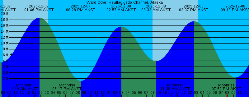 2025-12-07 02:08 AM AKST 16.05 feet High Tide 2025-12-07 07:40 AM AKST 3.49 feet Low Tide 2025-12-07 07:59 AM AKST Sunrise 2025-12-07 11:19 AM AKST Moonset 2025-12-07 01:46 PM AKST 18.67 feet High Tide 2025-12-07 03:17 PM AKST Sunset 2025-12-07 06:17 PM AKST Moonrise 2025-12-07 08:28 PM AKST -2.78 feet Low Tide 2025-12-08 02:57 AM AKST 15.66 feet High Tide 2025-12-08 08:01 AM AKST Sunrise 2025-12-08 08:32 AM AKST 3.91 feet Low Tide 2025-12-08 11:38 AM AKST Moonset 2025-12-08 02:37 PM AKST 17.47 feet High Tide 2025-12-08 03:16 PM AKST Sunset 2025-12-08 07:52 PM AKST Moonrise 2025-12-08 09:18 PM AKST -1.62 feet Low Tide 2025-12-09 03:48 AM AKST 15.17 feet High Tide 2025-12-09 08:02 AM AKST Sunrise 2025-12-09 09:30 AM AKST 4.40 feet Low Tide 2025-12-09 11:50 AM AKST Moonset 2025-12-09 03:16 PM AKST Sunset 2025-12-09 03:31 PM AKST 15.97 feet High Tide 2025-12-09 09:22 PM AKST Moonrise 2025-12-09 10:09 PM AKST -0.26 feet Low Tide 2025-12-10 04:42 AM AKST 14.70 feet High Tide 2025-12-10 08:03 AM AKST Sunrise 2025-12-10 10:34 AM AKST 4.80 feet Low Tide 2025-12-10 11:58 AM AKST Moonset 2025-12-10 03:16 PM AKST Sunset 2025-12-10 04:30 PM AKST 14.37 feet High Tide 2025-12-10 10:45 PM AKST Moonrise 2025-12-10 11:03 PM AKST 1.16 feet Low Tide |