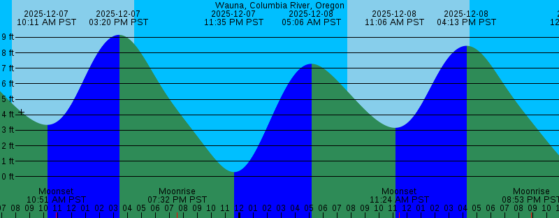 2025-12-07 04:14 AM PST 7.40 feet High Tide 2025-12-07 07:42 AM PST Sunrise 2025-12-07 10:11 AM PST 3.34 feet Low Tide 2025-12-07 10:51 AM PST Moonset 2025-12-07 03:20 PM PST 9.16 feet High Tide 2025-12-07 04:27 PM PST Sunset 2025-12-07 07:32 PM PST Moonrise 2025-12-07 11:35 PM PST 0.30 feet Low Tide 2025-12-08 05:06 AM PST 7.29 feet High Tide 2025-12-08 07:43 AM PST Sunrise 2025-12-08 11:06 AM PST 3.15 feet Low Tide 2025-12-08 11:24 AM PST Moonset 2025-12-08 04:13 PM PST 8.45 feet High Tide 2025-12-08 04:27 PM PST Sunset 2025-12-08 08:53 PM PST Moonrise 2025-12-09 12:20 AM PST 0.48 feet Low Tide 2025-12-09 05:59 AM PST 7.13 feet High Tide 2025-12-09 07:44 AM PST Sunrise 2025-12-09 11:49 AM PST Moonset 2025-12-09 12:02 PM PST 2.92 feet Low Tide 2025-12-09 04:27 PM PST Sunset 2025-12-09 05:09 PM PST 7.58 feet High Tide 2025-12-09 10:10 PM PST Moonrise 2025-12-10 01:04 AM PST 0.70 feet Low Tide 2025-12-10 06:53 AM PST 6.96 feet High Tide 2025-12-10 07:45 AM PST Sunrise 2025-12-10 12:09 PM PST Moonset 2025-12-10 01:03 PM PST 2.66 feet Low Tide 2025-12-10 04:27 PM PST Sunset 2025-12-10 06:14 PM PST 6.68 feet High Tide 2025-12-10 11:22 PM PST Moonrise |