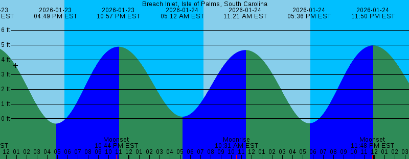 2026-01-23 04:49 PM EST -0.33 feet Low Tide 2026-01-23 05:43 PM EST Sunset 2026-01-23 10:44 PM EST Moonset 2026-01-23 10:57 PM EST 4.88 feet High Tide 2026-01-24 05:12 AM EST 0.14 feet Low Tide 2026-01-24 07:18 AM EST Sunrise 2026-01-24 10:31 AM EST Moonrise 2026-01-24 11:21 AM EST 4.65 feet High Tide 2026-01-24 05:36 PM EST -0.31 feet Low Tide 2026-01-24 05:44 PM EST Sunset 2026-01-24 11:48 PM EST Moonset 2026-01-24 11:50 PM EST 4.96 feet High Tide 2026-01-25 06:11 AM EST 0.34 feet Low Tide 2026-01-25 07:18 AM EST Sunrise 2026-01-25 11:02 AM EST Moonrise 2026-01-25 12:15 PM EST 4.41 feet High Tide 2026-01-25 05:45 PM EST Sunset 2026-01-25 06:29 PM EST -0.26 feet Low Tide 2026-01-25 11:48 PM EST First Quarter 2026-01-26 12:51 AM EST 5.02 feet High Tide 2026-01-26 12:56 AM EST Moonset 2026-01-26 07:17 AM EST Sunrise 2026-01-26 07:17 AM EST 0.48 feet Low Tide 2026-01-26 11:38 AM EST Moonrise 2026-01-26 01:18 PM EST 4.21 feet High Tide 2026-01-26 05:46 PM EST Sunset 2026-01-26 07:29 PM EST -0.24 feet Low Tide 2026-01-27 01:59 AM EST 5.10 feet High Tide 2026-01-27 02:07 AM EST Moonset 2026-01-27 07:17 AM EST Sunrise 2026-01-27 08:29 AM EST 0.49 feet Low Tide |