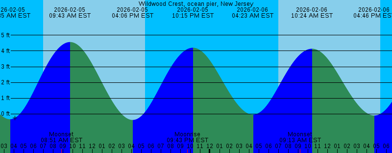 2026-02-05 03:35 AM EST -0.34 feet Low Tide 2026-02-05 07:01 AM EST Sunrise 2026-02-05 08:51 AM EST Moonset 2026-02-05 09:43 AM EST 4.57 feet High Tide 2026-02-05 04:06 PM EST -0.39 feet Low Tide 2026-02-05 05:25 PM EST Sunset 2026-02-05 09:43 PM EST Moonrise 2026-02-05 10:15 PM EST 4.21 feet High Tide 2026-02-06 04:23 AM EST -0.05 feet Low Tide 2026-02-06 07:00 AM EST Sunrise 2026-02-06 09:13 AM EST Moonset 2026-02-06 10:24 AM EST 4.14 feet High Tide 2026-02-06 04:46 PM EST -0.10 feet Low Tide 2026-02-06 05:26 PM EST Sunset 2026-02-06 10:46 PM EST Moonrise 2026-02-06 10:59 PM EST 4.08 feet High Tide 2026-02-07 05:12 AM EST 0.26 feet Low Tide 2026-02-07 06:59 AM EST Sunrise 2026-02-07 09:37 AM EST Moonset 2026-02-07 11:07 AM EST 3.71 feet High Tide 2026-02-07 05:26 PM EST 0.19 feet Low Tide 2026-02-07 05:27 PM EST Sunset 2026-02-07 11:45 PM EST 3.94 feet High Tide 2026-02-07 11:48 PM EST Moonrise 2026-02-08 06:04 AM EST 0.54 feet Low Tide 2026-02-08 06:58 AM EST Sunrise 2026-02-08 10:02 AM EST Moonset 2026-02-08 11:53 AM EST 3.31 feet High Tide 2026-02-08 05:28 PM EST Sunset 2026-02-08 06:09 PM EST 0.45 feet Low Tide 2026-02-09 12:36 AM EST 3.83 feet High Tide 2026-02-09 12:51 AM EST Moonrise |