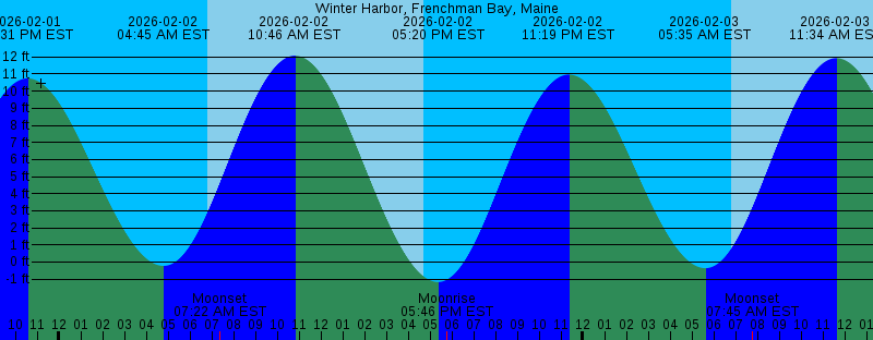 2026-02-02 04:45 AM EST -0.23 feet Low Tide 2026-02-02 06:49 AM EST Sunrise 2026-02-02 07:22 AM EST Moonset 2026-02-02 10:46 AM EST 12.08 feet High Tide 2026-02-02 04:43 PM EST Sunset 2026-02-02 05:20 PM EST -1.17 feet Low Tide 2026-02-02 05:46 PM EST Moonrise 2026-02-02 11:19 PM EST 10.97 feet High Tide 2026-02-03 05:35 AM EST -0.36 feet Low Tide 2026-02-03 06:48 AM EST Sunrise 2026-02-03 07:45 AM EST Moonset 2026-02-03 11:34 AM EST 11.93 feet High Tide 2026-02-03 04:44 PM EST Sunset 2026-02-03 06:06 PM EST -1.02 feet Low Tide 2026-02-03 07:00 PM EST Moonrise 2026-02-04 12:05 AM EST 11.02 feet High Tide 2026-02-04 06:23 AM EST -0.30 feet Low Tide 2026-02-04 06:47 AM EST Sunrise 2026-02-04 08:04 AM EST Moonset 2026-02-04 12:21 PM EST 11.57 feet High Tide 2026-02-04 04:46 PM EST Sunset 2026-02-04 06:49 PM EST -0.67 feet Low Tide 2026-02-04 08:11 PM EST Moonrise 2026-02-05 12:49 AM EST 10.92 feet High Tide 2026-02-05 06:45 AM EST Sunrise 2026-02-05 07:09 AM EST -0.08 feet Low Tide 2026-02-05 08:22 AM EST Moonset 2026-02-05 01:07 PM EST 11.04 feet High Tide 2026-02-05 04:47 PM EST Sunset 2026-02-05 07:33 PM EST -0.18 feet Low Tide 2026-02-05 09:20 PM EST Moonrise |