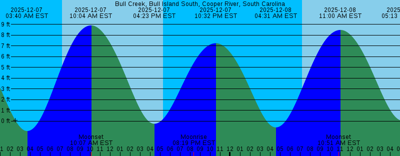 2025-12-07 03:40 AM EST -0.91 feet Low Tide 2025-12-07 07:11 AM EST Sunrise 2025-12-07 10:04 AM EST 8.90 feet High Tide 2025-12-07 10:07 AM EST Moonset 2025-12-07 04:23 PM EST -0.23 feet Low Tide 2025-12-07 05:18 PM EST Sunset 2025-12-07 08:19 PM EST Moonrise 2025-12-07 10:32 PM EST 7.24 feet High Tide 2025-12-08 04:31 AM EST -0.57 feet Low Tide 2025-12-08 07:12 AM EST Sunrise 2025-12-08 10:51 AM EST Moonset 2025-12-08 11:00 AM EST 8.47 feet High Tide 2025-12-08 05:13 PM EST 0.05 feet Low Tide 2025-12-08 05:18 PM EST Sunset 2025-12-08 09:29 PM EST Moonrise 2025-12-08 11:31 PM EST 7.03 feet High Tide 2025-12-09 05:24 AM EST -0.12 feet Low Tide 2025-12-09 07:12 AM EST Sunrise 2025-12-09 11:28 AM EST Moonset 2025-12-09 11:56 AM EST 8.01 feet High Tide 2025-12-09 05:18 PM EST Sunset 2025-12-09 06:04 PM EST 0.36 feet Low Tide 2025-12-09 10:35 PM EST Moonrise 2025-12-10 12:32 AM EST 6.87 feet High Tide 2025-12-10 06:19 AM EST 0.38 feet Low Tide 2025-12-10 07:13 AM EST Sunrise 2025-12-10 11:59 AM EST Moonset 2025-12-10 12:52 PM EST 7.57 feet High Tide 2025-12-10 05:18 PM EST Sunset 2025-12-10 06:57 PM EST 0.63 feet Low Tide |