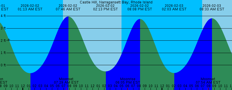 2026-02-02 01:13 AM EST -0.66 feet Low Tide 2026-02-02 06:55 AM EST Sunrise 2026-02-02 07:29 AM EST Moonset 2026-02-02 07:47 AM EST 3.96 feet High Tide 2026-02-02 02:13 PM EST -0.51 feet Low Tide 2026-02-02 05:02 PM EST Sunset 2026-02-02 06:05 PM EST Moonrise 2026-02-02 08:08 PM EST 3.76 feet High Tide 2026-02-03 02:03 AM EST -0.64 feet Low Tide 2026-02-03 06:55 AM EST Sunrise 2026-02-03 07:54 AM EST Moonset 2026-02-03 08:33 AM EST 3.81 feet High Tide 2026-02-03 02:46 PM EST -0.49 feet Low Tide 2026-02-03 05:04 PM EST Sunset 2026-02-03 07:17 PM EST Moonrise 2026-02-03 08:55 PM EST 3.76 feet High Tide 2026-02-04 02:48 AM EST -0.56 feet Low Tide 2026-02-04 06:53 AM EST Sunrise 2026-02-04 08:16 AM EST Moonset 2026-02-04 09:18 AM EST 3.57 feet High Tide 2026-02-04 03:16 PM EST -0.41 feet Low Tide 2026-02-04 05:05 PM EST Sunset 2026-02-04 08:25 PM EST Moonrise 2026-02-04 09:41 PM EST 3.66 feet High Tide 2026-02-05 03:30 AM EST -0.40 feet Low Tide 2026-02-05 06:52 AM EST Sunrise 2026-02-05 08:36 AM EST Moonset 2026-02-05 10:03 AM EST 3.27 feet High Tide 2026-02-05 03:46 PM EST -0.28 feet Low Tide 2026-02-05 05:06 PM EST Sunset |