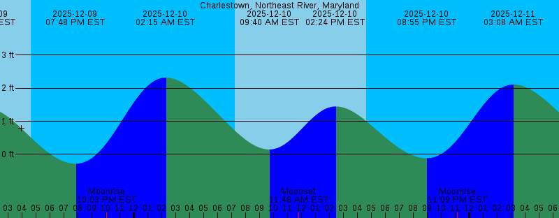 2025-12-08 12:25 AM EST 2.74 feet High Tide 2025-12-08 07:12 AM EST Sunrise 2025-12-08 08:01 AM EST 0.15 feet Low Tide 2025-12-08 10:50 AM EST Moonset 2025-12-08 12:24 PM EST 1.35 feet High Tide 2025-12-08 04:39 PM EST Sunset 2025-12-08 06:44 PM EST -0.43 feet Low Tide 2025-12-08 08:52 PM EST Moonrise 2025-12-09 01:21 AM EST 2.53 feet High Tide 2025-12-09 07:13 AM EST Sunrise 2025-12-09 08:51 AM EST 0.16 feet Low Tide 2025-12-09 11:21 AM EST Moonset 2025-12-09 01:23 PM EST 1.40 feet High Tide 2025-12-09 04:39 PM EST Sunset 2025-12-09 07:48 PM EST -0.28 feet Low Tide 2025-12-09 10:03 PM EST Moonrise 2025-12-10 02:15 AM EST 2.32 feet High Tide 2025-12-10 07:13 AM EST Sunrise 2025-12-10 09:40 AM EST 0.15 feet Low Tide 2025-12-10 11:48 AM EST Moonset 2025-12-10 02:24 PM EST 1.44 feet High Tide 2025-12-10 04:39 PM EST Sunset 2025-12-10 08:55 PM EST -0.12 feet Low Tide 2025-12-10 11:09 PM EST Moonrise 2025-12-11 03:08 AM EST 2.11 feet High Tide 2025-12-11 07:14 AM EST Sunrise 2025-12-11 10:27 AM EST 0.10 feet Low Tide 2025-12-11 12:10 PM EST Moonset 2025-12-11 03:29 PM EST 1.50 feet High Tide 2025-12-11 03:52 PM EST Last Quarter 2025-12-11 04:39 PM EST Sunset 2025-12-11 10:05 PM EST 0.06 feet Low Tide |