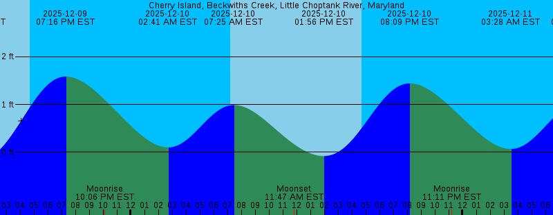 2025-12-08 01:01 AM EST 0.10 feet Low Tide 2025-12-08 05:25 AM EST 0.93 feet High Tide 2025-12-08 07:10 AM EST Sunrise 2025-12-08 10:48 AM EST Moonset 2025-12-08 11:45 AM EST -0.29 feet Low Tide 2025-12-08 04:43 PM EST Sunset 2025-12-08 06:22 PM EST 1.73 feet High Tide 2025-12-08 08:55 PM EST Moonrise 2025-12-09 01:52 AM EST 0.11 feet Low Tide 2025-12-09 06:24 AM EST 0.96 feet High Tide 2025-12-09 07:11 AM EST Sunrise 2025-12-09 11:20 AM EST Moonset 2025-12-09 12:49 PM EST -0.19 feet Low Tide 2025-12-09 04:43 PM EST Sunset 2025-12-09 07:16 PM EST 1.58 feet High Tide 2025-12-09 10:06 PM EST Moonrise 2025-12-10 02:41 AM EST 0.10 feet Low Tide 2025-12-10 07:11 AM EST Sunrise 2025-12-10 07:25 AM EST 0.99 feet High Tide 2025-12-10 11:47 AM EST Moonset 2025-12-10 01:56 PM EST -0.08 feet Low Tide 2025-12-10 04:43 PM EST Sunset 2025-12-10 08:09 PM EST 1.44 feet High Tide 2025-12-10 11:11 PM EST Moonrise 2025-12-11 03:28 AM EST 0.07 feet Low Tide 2025-12-11 07:12 AM EST Sunrise 2025-12-11 08:30 AM EST 1.03 feet High Tide 2025-12-11 12:11 PM EST Moonset 2025-12-11 03:06 PM EST 0.04 feet Low Tide 2025-12-11 03:52 PM EST Last Quarter 2025-12-11 04:43 PM EST Sunset 2025-12-11 08:59 PM EST 1.30 feet High Tide |