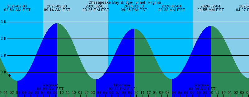 2026-02-02 05:30 PM EST Sunset 2026-02-02 06:33 PM EST Moonrise 2026-02-02 08:50 PM EST 2.55 feet High Tide 2026-02-03 02:50 AM EST -0.50 feet Low Tide 2026-02-03 07:05 AM EST Sunrise 2026-02-03 08:08 AM EST Moonset 2026-02-03 09:14 AM EST 2.92 feet High Tide 2026-02-03 03:26 PM EST -0.42 feet Low Tide 2026-02-03 05:31 PM EST Sunset 2026-02-03 07:40 PM EST Moonrise 2026-02-03 09:35 PM EST 2.60 feet High Tide 2026-02-04 03:38 AM EST -0.40 feet Low Tide 2026-02-04 07:04 AM EST Sunrise 2026-02-04 08:34 AM EST Moonset 2026-02-04 09:55 AM EST 2.76 feet High Tide 2026-02-04 04:07 PM EST -0.36 feet Low Tide 2026-02-04 05:32 PM EST Sunset 2026-02-04 08:45 PM EST Moonrise 2026-02-04 10:18 PM EST 2.60 feet High Tide 2026-02-05 04:25 AM EST -0.25 feet Low Tide 2026-02-05 07:03 AM EST Sunrise 2026-02-05 08:57 AM EST Moonset 2026-02-05 10:35 AM EST 2.55 feet High Tide 2026-02-05 04:45 PM EST -0.25 feet Low Tide 2026-02-05 05:33 PM EST Sunset 2026-02-05 09:47 PM EST Moonrise 2026-02-05 11:00 PM EST 2.56 feet High Tide 2026-02-06 05:12 AM EST -0.07 feet Low Tide 2026-02-06 07:02 AM EST Sunrise 2026-02-06 09:21 AM EST Moonset 2026-02-06 11:13 AM EST 2.32 feet High Tide |