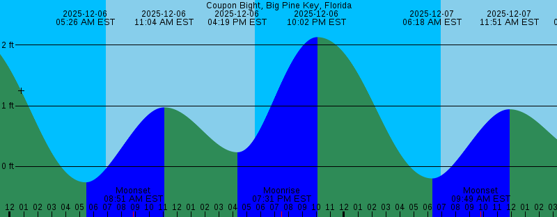 2025-12-06 05:26 AM EST -0.26 feet Low Tide 2025-12-06 06:56 AM EST Sunrise 2025-12-06 08:51 AM EST Moonset 2025-12-06 11:04 AM EST 0.97 feet High Tide 2025-12-06 04:19 PM EST 0.23 feet Low Tide 2025-12-06 05:36 PM EST Sunset 2025-12-06 07:31 PM EST Moonrise 2025-12-06 10:02 PM EST 2.13 feet High Tide 2025-12-07 06:18 AM EST -0.20 feet Low Tide 2025-12-07 06:57 AM EST Sunrise 2025-12-07 09:49 AM EST Moonset 2025-12-07 11:51 AM EST 0.94 feet High Tide 2025-12-07 05:10 PM EST 0.23 feet Low Tide 2025-12-07 05:36 PM EST Sunset 2025-12-07 08:40 PM EST Moonrise 2025-12-07 10:56 PM EST 2.03 feet High Tide 2025-12-08 06:57 AM EST Sunrise 2025-12-08 07:11 AM EST -0.11 feet Low Tide 2025-12-08 10:38 AM EST Moonset 2025-12-08 12:40 PM EST 0.95 feet High Tide 2025-12-08 05:37 PM EST Sunset 2025-12-08 06:06 PM EST 0.25 feet Low Tide 2025-12-08 09:46 PM EST Moonrise 2025-12-08 11:52 PM EST 1.87 feet High Tide 2025-12-09 06:58 AM EST Sunrise 2025-12-09 08:04 AM EST -0.01 feet Low Tide 2025-12-09 11:19 AM EST Moonset 2025-12-09 01:31 PM EST 1.00 feet High Tide 2025-12-09 05:37 PM EST Sunset 2025-12-09 07:12 PM EST 0.28 feet Low Tide 2025-12-09 10:47 PM EST Moonrise |