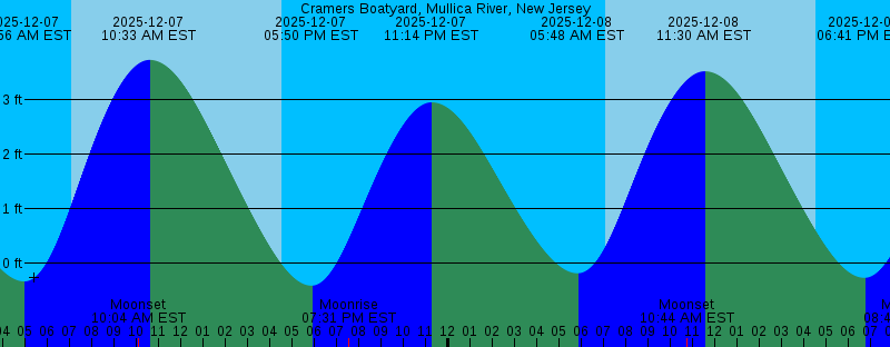 2025-12-07 04:56 AM EST -0.33 feet Low Tide 2025-12-07 07:05 AM EST Sunrise 2025-12-07 10:04 AM EST Moonset 2025-12-07 10:33 AM EST 3.73 feet High Tide 2025-12-07 04:33 PM EST Sunset 2025-12-07 05:50 PM EST -0.41 feet Low Tide 2025-12-07 07:31 PM EST Moonrise 2025-12-07 11:14 PM EST 2.95 feet High Tide 2025-12-08 05:48 AM EST -0.18 feet Low Tide 2025-12-08 07:06 AM EST Sunrise 2025-12-08 10:44 AM EST Moonset 2025-12-08 11:30 AM EST 3.52 feet High Tide 2025-12-08 04:33 PM EST Sunset 2025-12-08 06:41 PM EST -0.27 feet Low Tide 2025-12-08 08:46 PM EST Moonrise 2025-12-09 12:13 AM EST 2.87 feet High Tide 2025-12-09 06:41 AM EST 0.01 feet Low Tide 2025-12-09 07:07 AM EST Sunrise 2025-12-09 11:15 AM EST Moonset 2025-12-09 12:28 PM EST 3.31 feet High Tide 2025-12-09 04:33 PM EST Sunset 2025-12-09 07:34 PM EST -0.10 feet Low Tide 2025-12-09 09:57 PM EST Moonrise 2025-12-10 01:12 AM EST 2.82 feet High Tide 2025-12-10 07:07 AM EST Sunrise 2025-12-10 07:38 AM EST 0.23 feet Low Tide 2025-12-10 11:41 AM EST Moonset 2025-12-10 01:24 PM EST 3.09 feet High Tide 2025-12-10 04:33 PM EST Sunset 2025-12-10 08:30 PM EST 0.04 feet Low Tide 2025-12-10 11:03 PM EST Moonrise |
