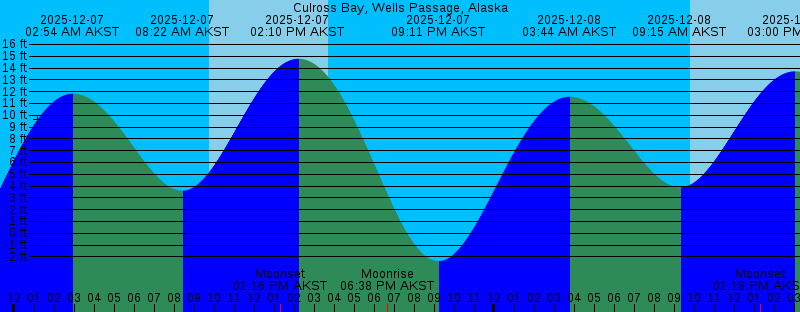 2025-12-07 02:54 AM AKST 11.83 feet High Tide 2025-12-07 08:22 AM AKST 3.61 feet Low Tide 2025-12-07 09:46 AM AKST Sunrise 2025-12-07 01:16 PM AKST Moonset 2025-12-07 02:10 PM AKST 14.79 feet High Tide 2025-12-07 03:41 PM AKST Sunset 2025-12-07 06:38 PM AKST Moonrise 2025-12-07 09:11 PM AKST -2.36 feet Low Tide 2025-12-08 03:44 AM AKST 11.57 feet High Tide 2025-12-08 09:15 AM AKST 3.89 feet Low Tide 2025-12-08 09:48 AM AKST Sunrise 2025-12-08 01:18 PM AKST Moonset 2025-12-08 03:00 PM AKST 13.72 feet High Tide 2025-12-08 03:41 PM AKST Sunset 2025-12-08 08:30 PM AKST Moonrise 2025-12-08 10:00 PM AKST -1.43 feet Low Tide 2025-12-09 04:37 AM AKST 11.26 feet High Tide 2025-12-09 09:49 AM AKST Sunrise 2025-12-09 10:11 AM AKST 4.19 feet Low Tide 2025-12-09 01:18 PM AKST Moonset 2025-12-09 03:40 PM AKST Sunset 2025-12-09 03:53 PM AKST 12.37 feet High Tide 2025-12-09 10:12 PM AKST Moonrise 2025-12-09 10:49 PM AKST -0.33 feet Low Tide 2025-12-10 05:33 AM AKST 11.03 feet High Tide 2025-12-10 09:51 AM AKST Sunrise 2025-12-10 11:11 AM AKST 4.42 feet Low Tide 2025-12-10 01:17 PM AKST Moonset 2025-12-10 03:40 PM AKST Sunset 2025-12-10 04:57 PM AKST 10.93 feet High Tide |