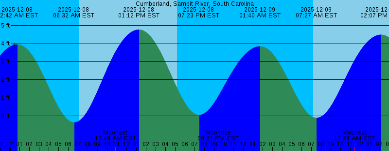 2025-12-07 05:10 PM EST Sunset 2025-12-07 06:30 PM EST -0.09 feet Low Tide 2025-12-07 08:10 PM EST Moonrise 2025-12-08 12:42 AM EST 3.95 feet High Tide 2025-12-08 06:32 AM EST -0.35 feet Low Tide 2025-12-08 07:09 AM EST Sunrise 2025-12-08 10:49 AM EST Moonset 2025-12-08 01:12 PM EST 4.78 feet High Tide 2025-12-08 05:10 PM EST Sunset 2025-12-08 07:23 PM EST 0.06 feet Low Tide 2025-12-08 09:21 PM EST Moonrise 2025-12-09 01:40 AM EST 3.85 feet High Tide 2025-12-09 07:09 AM EST Sunrise 2025-12-09 07:27 AM EST -0.10 feet Low Tide 2025-12-09 11:24 AM EST Moonset 2025-12-09 02:07 PM EST 4.50 feet High Tide 2025-12-09 05:10 PM EST Sunset 2025-12-09 08:16 PM EST 0.21 feet Low Tide 2025-12-09 10:27 PM EST Moonrise 2025-12-10 02:38 AM EST 3.77 feet High Tide 2025-12-10 07:10 AM EST Sunrise 2025-12-10 08:25 AM EST 0.17 feet Low Tide 2025-12-10 11:54 AM EST Moonset 2025-12-10 03:00 PM EST 4.22 feet High Tide 2025-12-10 05:10 PM EST Sunset 2025-12-10 09:10 PM EST 0.32 feet Low Tide 2025-12-10 11:29 PM EST Moonrise 2025-12-11 03:38 AM EST 3.73 feet High Tide 2025-12-11 07:11 AM EST Sunrise 2025-12-11 09:25 AM EST 0.40 feet Low Tide 2025-12-11 12:21 PM EST Moonset |