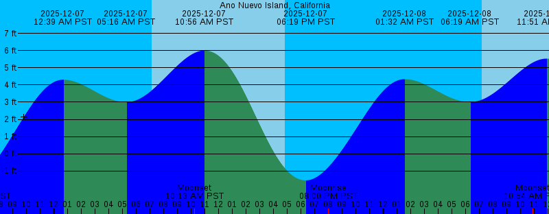 2025-12-07 12:39 AM PST 4.31 feet High Tide 2025-12-07 05:16 AM PST 3.00 feet Low Tide 2025-12-07 07:09 AM PST Sunrise 2025-12-07 10:13 AM PST Moonset 2025-12-07 10:56 AM PST 6.01 feet High Tide 2025-12-07 04:52 PM PST Sunset 2025-12-07 06:19 PM PST -1.56 feet Low Tide 2025-12-07 08:00 PM PST Moonrise 2025-12-08 01:32 AM PST 4.34 feet High Tide 2025-12-08 06:19 AM PST 3.01 feet Low Tide 2025-12-08 07:10 AM PST Sunrise 2025-12-08 10:54 AM PST Moonset 2025-12-08 11:51 AM PST 5.54 feet High Tide 2025-12-08 04:52 PM PST Sunset 2025-12-08 07:12 PM PST -1.08 feet Low Tide 2025-12-08 09:13 PM PST Moonrise 2025-12-09 02:24 AM PST 4.40 feet High Tide 2025-12-09 07:11 AM PST Sunrise 2025-12-09 07:30 AM PST 2.92 feet Low Tide 2025-12-09 11:26 AM PST Moonset 2025-12-09 12:49 PM PST 4.94 feet High Tide 2025-12-09 04:52 PM PST Sunset 2025-12-09 08:04 PM PST -0.52 feet Low Tide 2025-12-09 10:21 PM PST Moonrise 2025-12-10 03:14 AM PST 4.52 feet High Tide 2025-12-10 07:12 AM PST Sunrise 2025-12-10 08:48 AM PST 2.69 feet Low Tide 2025-12-10 11:53 AM PST Moonset 2025-12-10 01:55 PM PST 4.30 feet High Tide 2025-12-10 04:52 PM PST Sunset |