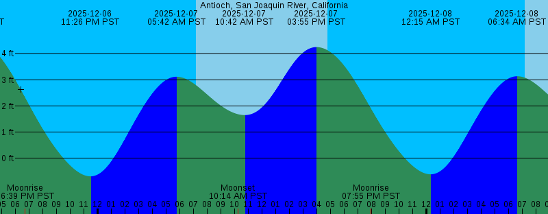 2025-12-06 04:47 PM PST Sunset 2025-12-06 06:39 PM PST Moonrise 2025-12-06 11:26 PM PST -0.69 feet Low Tide 2025-12-07 05:42 AM PST 3.12 feet High Tide 2025-12-07 07:10 AM PST Sunrise 2025-12-07 10:14 AM PST Moonset 2025-12-07 10:42 AM PST 1.66 feet Low Tide 2025-12-07 03:55 PM PST 4.26 feet High Tide 2025-12-07 04:47 PM PST Sunset 2025-12-07 07:55 PM PST Moonrise 2025-12-08 12:15 AM PST -0.61 feet Low Tide 2025-12-08 06:34 AM PST 3.14 feet High Tide 2025-12-08 07:11 AM PST Sunrise 2025-12-08 10:54 AM PST Moonset 2025-12-08 11:44 AM PST 1.55 feet Low Tide 2025-12-08 04:47 PM PST Sunset 2025-12-08 04:52 PM PST 3.91 feet High Tide 2025-12-08 09:08 PM PST Moonrise 2025-12-09 01:04 AM PST -0.49 feet Low Tide 2025-12-09 07:11 AM PST Sunrise 2025-12-09 07:26 AM PST 3.16 feet High Tide 2025-12-09 11:26 AM PST Moonset 2025-12-09 12:50 PM PST 1.41 feet Low Tide 2025-12-09 04:47 PM PST Sunset 2025-12-09 05:54 PM PST 3.49 feet High Tide 2025-12-09 10:17 PM PST Moonrise 2025-12-10 01:51 AM PST -0.34 feet Low Tide 2025-12-10 07:12 AM PST Sunrise 2025-12-10 08:16 AM PST 3.19 feet High Tide 2025-12-10 11:52 AM PST Moonset 2025-12-10 01:59 PM PST 1.22 feet Low Tide |