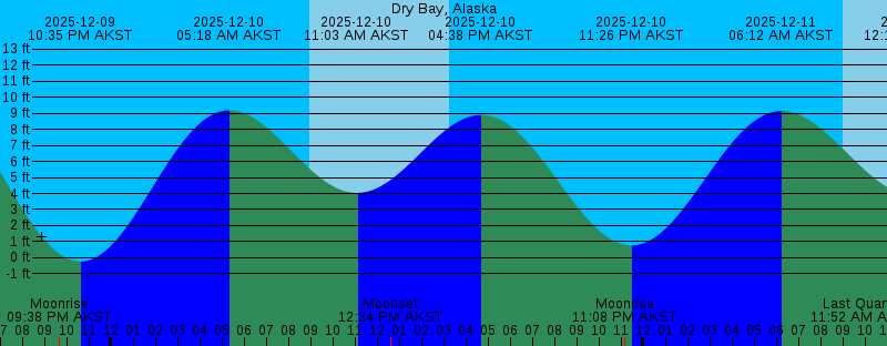 2025-12-09 09:38 PM AKST Moonrise 2025-12-09 10:35 PM AKST -0.24 feet Low Tide 2025-12-10 05:18 AM AKST 9.19 feet High Tide 2025-12-10 08:58 AM AKST Sunrise 2025-12-10 11:03 AM AKST 4.04 feet Low Tide 2025-12-10 12:34 PM AKST Moonset 2025-12-10 03:16 PM AKST Sunset 2025-12-10 04:38 PM AKST 8.90 feet High Tide 2025-12-10 11:08 PM AKST Moonrise 2025-12-10 11:26 PM AKST 0.76 feet Low Tide 2025-12-11 06:12 AM AKST 9.15 feet High Tide 2025-12-11 08:59 AM AKST Sunrise 2025-12-11 11:52 AM AKST Last Quarter 2025-12-11 12:18 PM AKST 3.82 feet Low Tide 2025-12-11 12:35 PM AKST Moonset 2025-12-11 03:15 PM AKST Sunset 2025-12-11 05:49 PM AKST 7.85 feet High Tide 2025-12-12 12:19 AM AKST 1.77 feet Low Tide 2025-12-12 12:34 AM AKST Moonrise 2025-12-12 07:05 AM AKST 9.21 feet High Tide 2025-12-12 09:01 AM AKST Sunrise 2025-12-12 12:36 PM AKST Moonset 2025-12-12 01:36 PM AKST 3.31 feet Low Tide 2025-12-12 03:15 PM AKST Sunset 2025-12-12 07:12 PM AKST 7.14 feet High Tide 2025-12-13 01:14 AM AKST 2.70 feet Low Tide 2025-12-13 01:56 AM AKST Moonrise 2025-12-13 07:54 AM AKST 9.37 feet High Tide 2025-12-13 09:02 AM AKST Sunrise 2025-12-13 12:36 PM AKST Moonset 2025-12-13 02:45 PM AKST 2.60 feet Low Tide 2025-12-13 03:15 PM AKST Sunset |