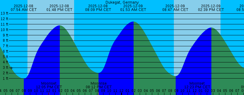 2025-12-07 07:19 PM CET 1.66 feet Low Tide 2025-12-08 01:03 AM CET 11.57 feet High Tide 2025-12-08 07:54 AM CET 0.97 feet Low Tide 2025-12-08 08:34 AM CET Sunrise 2025-12-08 12:05 PM CET Moonset 2025-12-08 01:48 PM CET 10.81 feet High Tide 2025-12-08 04:13 PM CET Sunset 2025-12-08 08:09 PM CET 2.03 feet Low Tide 2025-12-08 08:12 PM CET Moonrise 2025-12-09 01:53 AM CET 11.52 feet High Tide 2025-12-09 08:35 AM CET Sunrise 2025-12-09 08:47 AM CET 1.43 feet Low Tide 2025-12-09 12:23 PM CET Moonset 2025-12-09 02:39 PM CET 10.41 feet High Tide 2025-12-09 04:13 PM CET Sunset 2025-12-09 08:55 PM CET 2.62 feet Low Tide 2025-12-09 09:40 PM CET Moonrise 2025-12-10 02:42 AM CET 11.36 feet High Tide 2025-12-10 08:36 AM CET Sunrise 2025-12-10 09:38 AM CET 2.13 feet Low Tide 2025-12-10 12:36 PM CET Moonset 2025-12-10 03:29 PM CET 10.04 feet High Tide 2025-12-10 04:13 PM CET Sunset 2025-12-10 09:39 PM CET 3.22 feet Low Tide 2025-12-10 11:03 PM CET Moonrise 2025-12-11 03:31 AM CET 11.22 feet High Tide 2025-12-11 08:37 AM CET Sunrise 2025-12-11 10:28 AM CET 2.76 feet Low Tide 2025-12-11 12:45 PM CET Moonset 2025-12-11 04:13 PM CET Sunset 2025-12-11 04:19 PM CET 9.84 feet High Tide |
