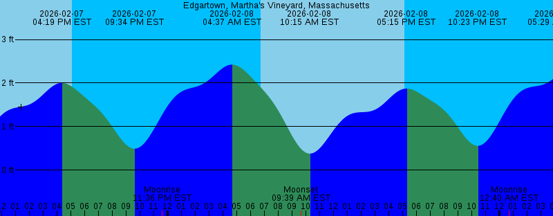 2026-02-07 04:19 PM EST 2.00 feet High Tide 2026-02-07 05:05 PM EST Sunset 2026-02-07 09:34 PM EST 0.49 feet Low Tide 2026-02-07 11:36 PM EST Moonrise 2026-02-08 04:37 AM EST 2.42 feet High Tide 2026-02-08 06:45 AM EST Sunrise 2026-02-08 09:39 AM EST Moonset 2026-02-08 10:15 AM EST 0.38 feet Low Tide 2026-02-08 05:07 PM EST Sunset 2026-02-08 05:15 PM EST 1.87 feet High Tide 2026-02-08 10:23 PM EST 0.56 feet Low Tide 2026-02-09 12:40 AM EST Moonrise 2026-02-09 05:29 AM EST 2.42 feet High Tide 2026-02-09 06:44 AM EST Sunrise 2026-02-09 07:44 AM EST Last Quarter 2026-02-09 10:06 AM EST Moonset 2026-02-09 11:06 AM EST 0.39 feet Low Tide 2026-02-09 02:32 PM EST 1.24 feet High Tide 2026-02-09 03:06 PM EST 1.24 feet Low Tide 2026-02-09 05:08 PM EST Sunset 2026-02-09 06:14 PM EST 1.79 feet High Tide 2026-02-09 11:10 PM EST 0.60 feet Low Tide 2026-02-10 01:43 AM EST Moonrise 2026-02-10 06:24 AM EST 2.44 feet High Tide 2026-02-10 06:43 AM EST Sunrise 2026-02-10 10:40 AM EST Moonset 2026-02-10 11:55 AM EST 0.40 feet Low Tide 2026-02-10 03:14 PM EST 1.18 feet High Tide 2026-02-10 04:04 PM EST 1.17 feet Low Tide 2026-02-10 05:09 PM EST Sunset 2026-02-10 07:12 PM EST 1.75 feet High Tide 2026-02-10 11:57 PM EST 0.63 feet Low Tide 2026-02-11 02:44 AM EST Moonrise 2026-02-11 06:42 AM EST Sunrise 2026-02-11 07:17 AM EST 2.48 feet High Tide |