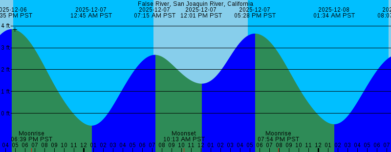 2025-12-06 04:35 PM PST 3.85 feet High Tide 2025-12-06 04:46 PM PST Sunset 2025-12-06 06:39 PM PST Moonrise 2025-12-07 12:45 AM PST -0.56 feet Low Tide 2025-12-07 07:09 AM PST Sunrise 2025-12-07 07:15 AM PST 2.68 feet High Tide 2025-12-07 10:13 AM PST Moonset 2025-12-07 12:01 PM PST 1.36 feet Low Tide 2025-12-07 04:46 PM PST Sunset 2025-12-07 05:28 PM PST 3.65 feet High Tide 2025-12-07 07:54 PM PST Moonrise 2025-12-08 01:34 AM PST -0.50 feet Low Tide 2025-12-08 07:10 AM PST Sunrise 2025-12-08 08:07 AM PST 2.69 feet High Tide 2025-12-08 10:53 AM PST Moonset 2025-12-08 01:03 PM PST 1.28 feet Low Tide 2025-12-08 04:46 PM PST Sunset 2025-12-08 06:25 PM PST 3.35 feet High Tide 2025-12-08 09:08 PM PST Moonrise 2025-12-09 02:23 AM PST -0.40 feet Low Tide 2025-12-09 07:11 AM PST Sunrise 2025-12-09 08:59 AM PST 2.71 feet High Tide 2025-12-09 11:25 AM PST Moonset 2025-12-09 02:09 PM PST 1.16 feet Low Tide 2025-12-09 04:46 PM PST Sunset 2025-12-09 07:27 PM PST 2.99 feet High Tide 2025-12-09 10:17 PM PST Moonrise 2025-12-10 03:10 AM PST -0.28 feet Low Tide 2025-12-10 07:12 AM PST Sunrise 2025-12-10 09:49 AM PST 2.74 feet High Tide 2025-12-10 11:52 AM PST Moonset 2025-12-10 03:18 PM PST 1.00 feet Low Tide |