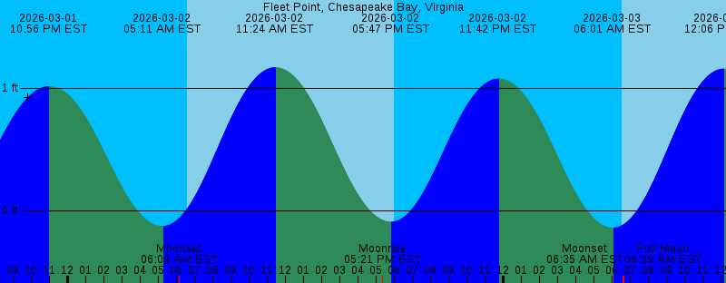 2026-03-01 10:56 PM EST 1.02 feet High Tide 2026-03-02 05:11 AM EST -0.12 feet Low Tide 2026-03-02 06:09 AM EST Moonset 2026-03-02 06:35 AM EST Sunrise 2026-03-02 11:24 AM EST 1.17 feet High Tide 2026-03-02 05:21 PM EST Moonrise 2026-03-02 05:47 PM EST -0.09 feet Low Tide 2026-03-02 05:59 PM EST Sunset 2026-03-02 11:42 PM EST 1.08 feet High Tide 2026-03-03 06:01 AM EST -0.14 feet Low Tide 2026-03-03 06:33 AM EST Sunrise 2026-03-03 06:35 AM EST Moonset 2026-03-03 06:39 AM EST Full Moon 2026-03-03 12:06 PM EST 1.16 feet High Tide 2026-03-03 06:00 PM EST Sunset 2026-03-03 06:27 PM EST Moonrise 2026-03-03 06:28 PM EST -0.10 feet Low Tide 2026-03-04 12:24 AM EST 1.12 feet High Tide 2026-03-04 06:32 AM EST Sunrise 2026-03-04 06:46 AM EST -0.13 feet Low Tide 2026-03-04 06:59 AM EST Moonset 2026-03-04 12:45 PM EST 1.13 feet High Tide 2026-03-04 06:01 PM EST Sunset 2026-03-04 07:05 PM EST -0.10 feet Low Tide 2026-03-04 07:32 PM EST Moonrise 2026-03-05 01:03 AM EST 1.14 feet High Tide 2026-03-05 06:30 AM EST Sunrise 2026-03-05 07:22 AM EST Moonset 2026-03-05 07:29 AM EST -0.09 feet Low Tide 2026-03-05 01:22 PM EST 1.07 feet High Tide 2026-03-05 06:02 PM EST Sunset 2026-03-05 07:40 PM EST -0.07 feet Low Tide |